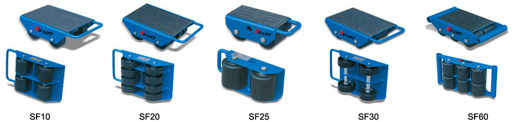 注意事頂: 以下滑動輪系列產(chǎn)品的額定載重量是指受力為鋼制表面時,滑動輪組件所能承受的最大載荷,想要安全可靠的移動載荷,最重要的是受力面的材料。瓷磚或易碎裂的受力面是不適合滑動輪工作的,在混凝土或停機(jī)坪受力面上工作時,滑動輪的載重量將受到一定的限制(取決于受力面的設(shè)計(jì)壓力和表面平整度)。 建議鋪置厚度為10mm以上的鋼板在受力面上,滑動輪的拉力一般為實(shí)際載重量的4%-7%(視受力面的平整度而定)。在斜坡上工作時,一定要采取一些安全預(yù)防措施,避免滑動輪失控和載荷傾翻。 選用滑動輪時,應(yīng)考慮載荷重量是否均勻分布,以確保單個滑動輪單元的受力在其額定載重量之內(nèi),如有必要,可局部增加滑動輪單元的數(shù)量。 ● 與撬棒或千斤頂配合使用.可用于重型貨物的移動 ● 耐磨橡膠表面可防止載荷滑動并有效保護(hù)載荷表面