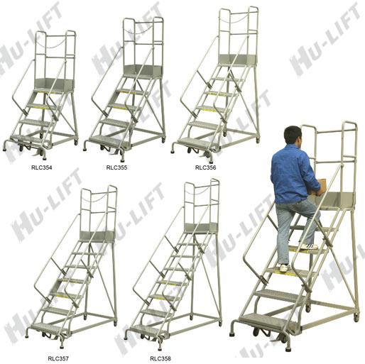 ● 配置踏板鎖定機構.踩壓底部踏板可自動固定梯子;踩壓底部踏板下方的解除鎖定壓桿,便可輕松移動取貨梯