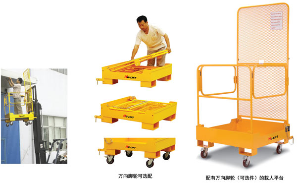 ● 載人平臺通過安全長銷和和鏈條固定在貨叉上,確保不會滑動