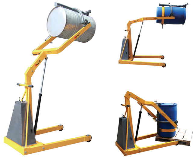 ● 適合55加侖的標準鋼質(zhì)油桶和210L塑料桶的搬運,堆放,翻轉(zhuǎn)投料。