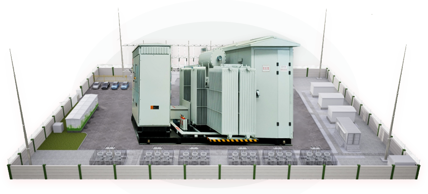 華式箱變是一種集油浸式變壓器、高壓單元、低壓開關柜及相關輔助設備于一體的高壓/低壓預裝式變電站。電壓等級12 ~40.5 kV,容量范圍300~10000kVA,主要適用于新能源行業。
