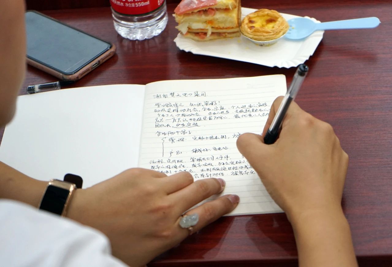 緊接著董事長陳偉其從管理的實踐之知識密碼、管理的實踐之企業(yè)理解模型、管理的實踐之湘能楚天三個方面進行了深入淺出的分享,并與成員組進行了面對面的交流、探討,成員組積極提出疑問,討論氣氛非常熱烈。